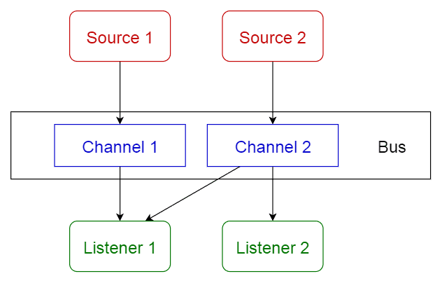 Bu model öncelikle olaylarla ilgilenir ve 4 ana bileşeni vardır; olay kaynağı, olay dinleyicisi, kanal ve olay veriyolu. Kaynaklar, bir olay veri yolundaki belirli kanallara mesajlar yayınlar. Dinleyiciler belirli kanallara abone olurlar. Dinleyiciler, daha önce abone oldukları bir kanala yayınlanan mesajlardan haberdar edilirler.